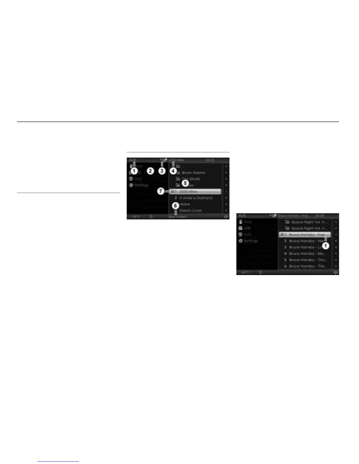 AUX content area with track/folder list