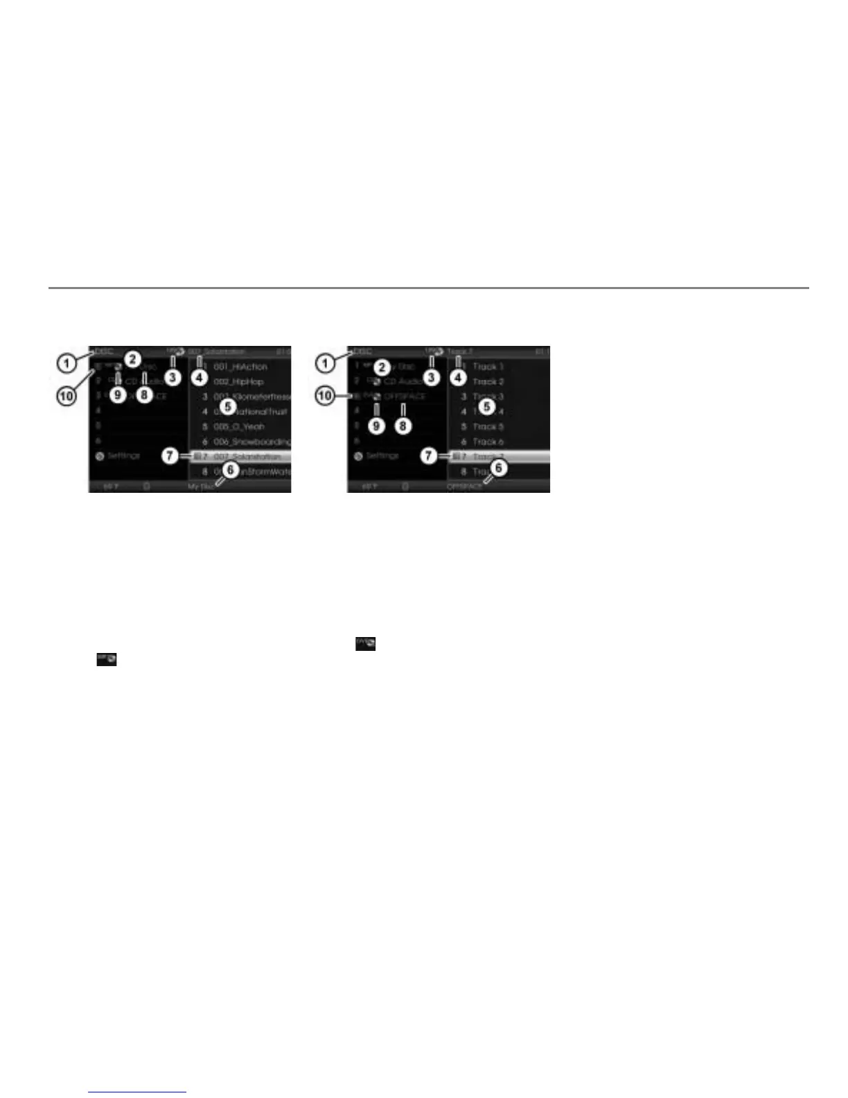 Track or folder list of the disc currently