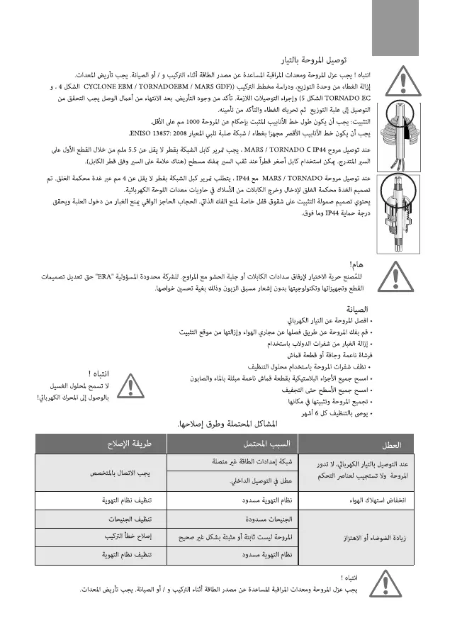 ERA PRO MARS GDF 125 - Operation, Maintenance, and Troubleshooting; Fan Connection and Network Setup; Maintenance and Troubleshooting