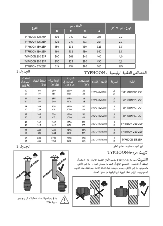 ERA PRO TYPHOON 160 2SP - TYPHOON Technical Specifications; Fan Mounting and Specifications