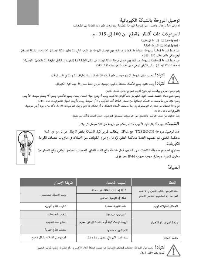 ERA PRO TYPHOON 200 2SP - Connecting the Fan to the Mains; Maintenance and Troubleshooting