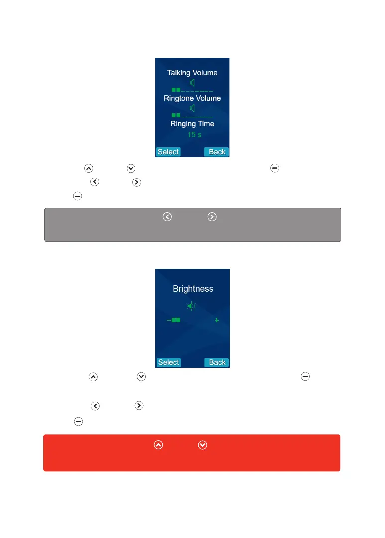 1. Press Up or Down to choose “Volume” menu, then press beneath Select