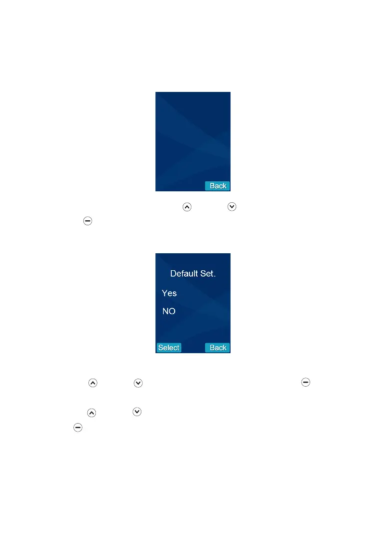 3. Press beneath Select to reset the settings or back to return to the previous
