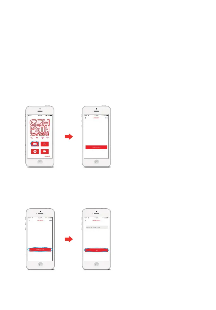 Adding accounts enables you to link the alarm system to your smartphone. You can