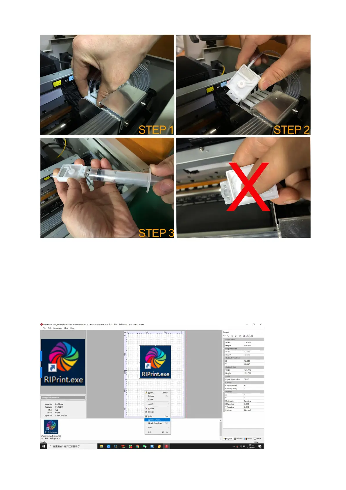 ② Click on the top left corner of the software "file"; select "Nozzle Check";
