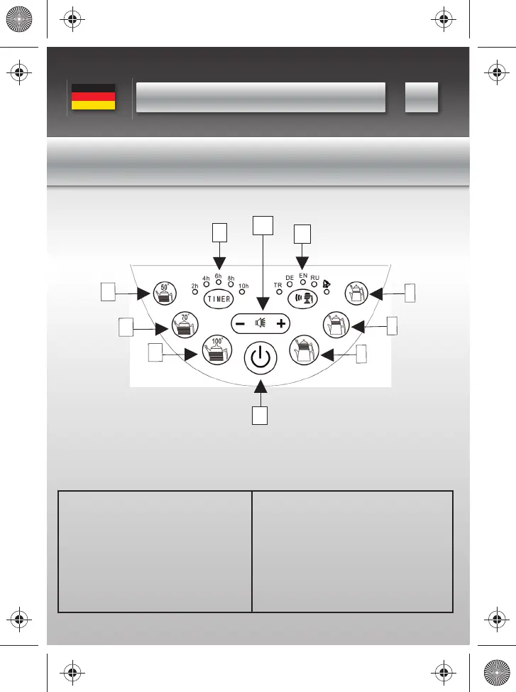 3. Lautstärkenregler 8. Wasserkocherwahl (70°)