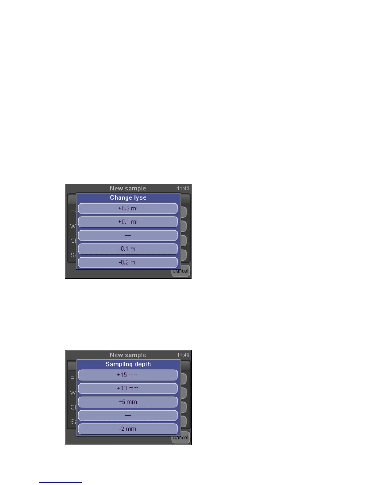 specified by SW. Default lyse quantity can be adjusted in Patient limits menu