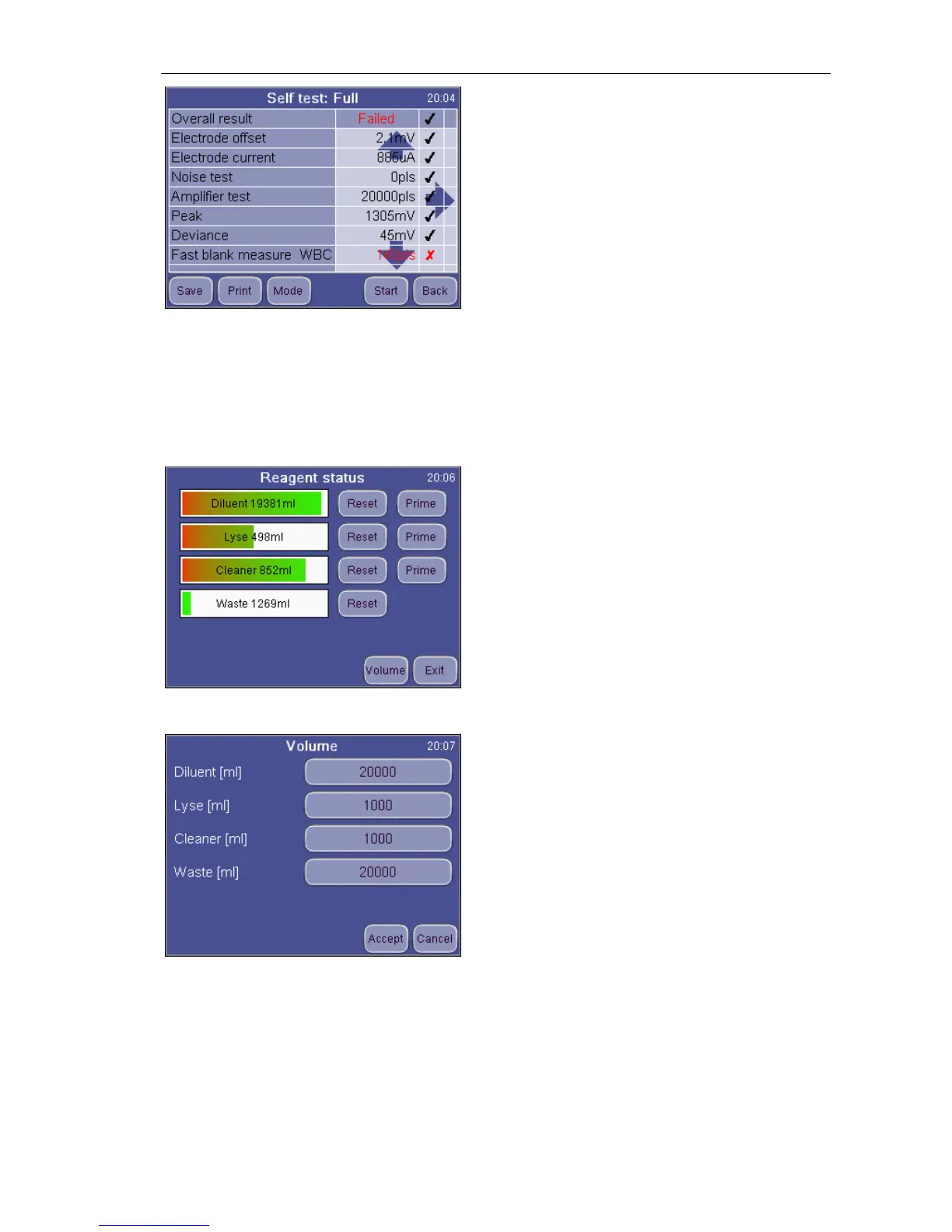 The screen shows reagent volumes in containers, as calculated by the instrument.
