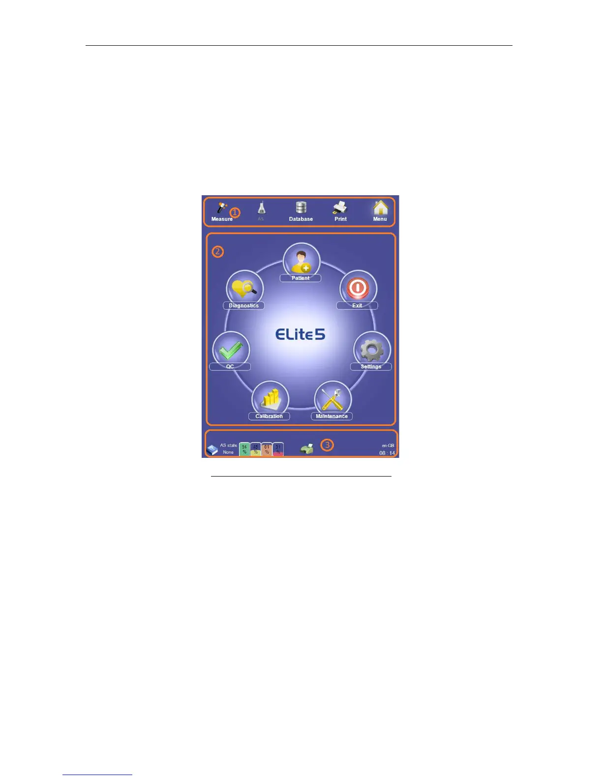 The graphical user interface (GUI) of the ‘ELite 5’ is divided into three main sections. Refer to
