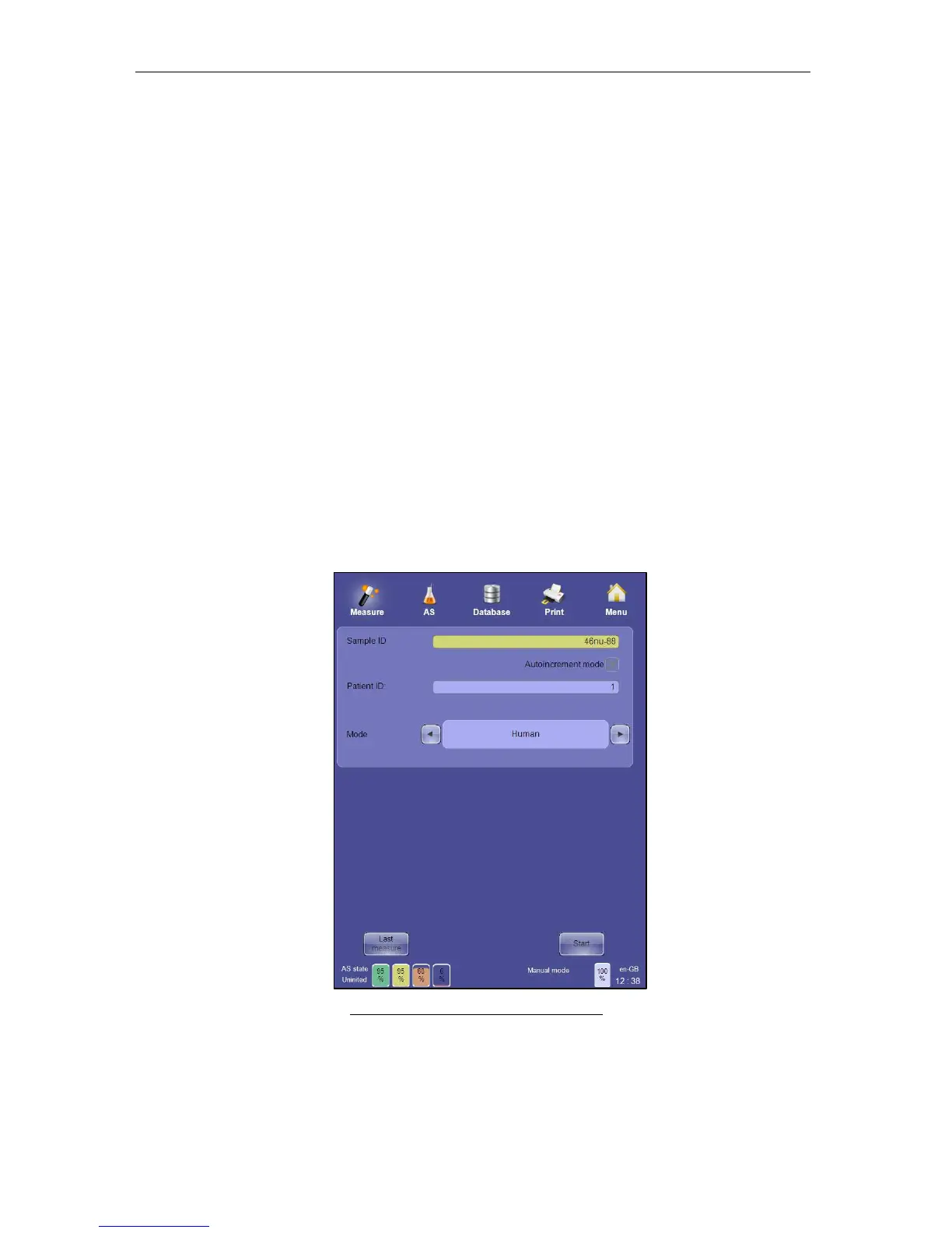 • Start the measurement by clicking or tapping the ‘Start’ button on the screen or by