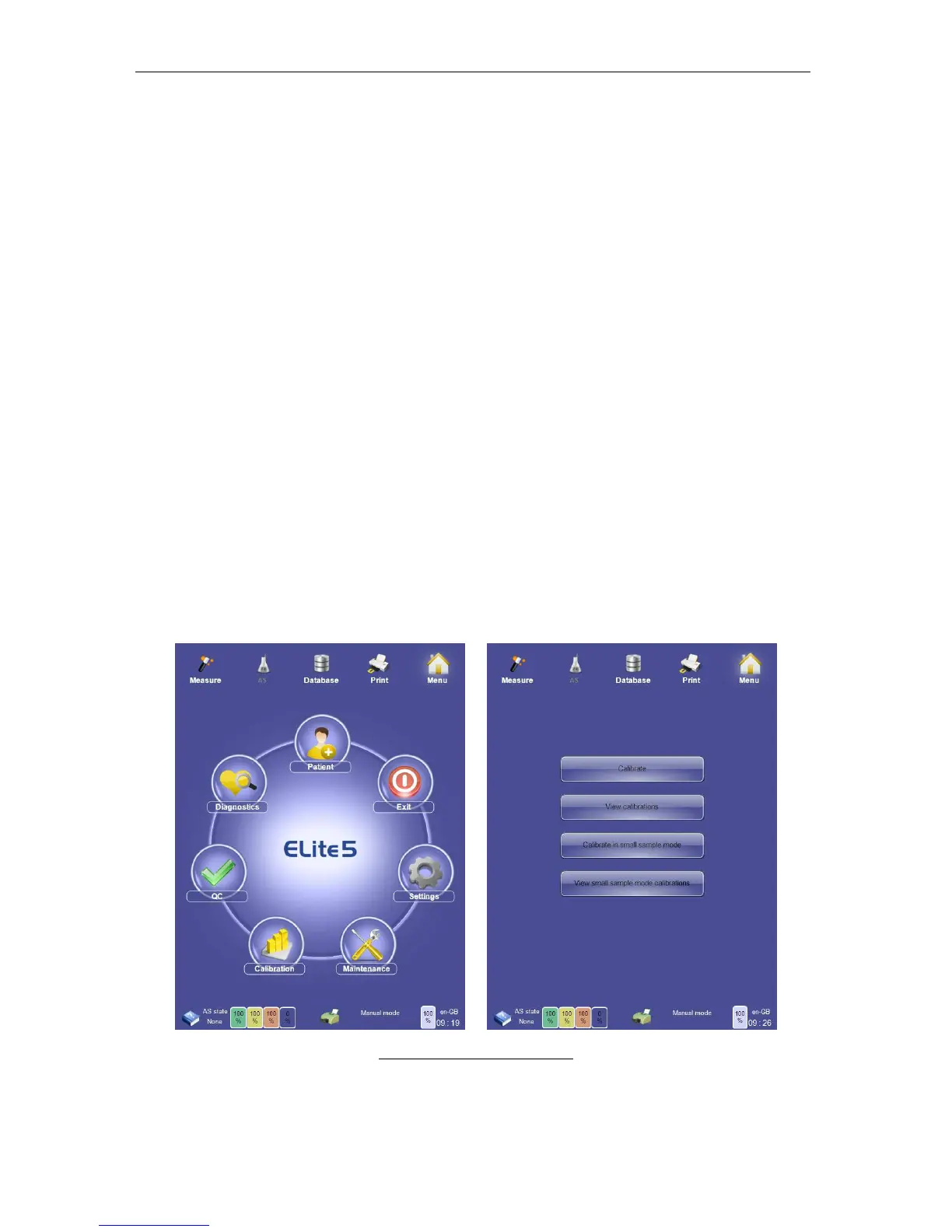 To view the calibration functions of the ‘ELite 5’ analyzer, select the ‘Calibration’ icon on the