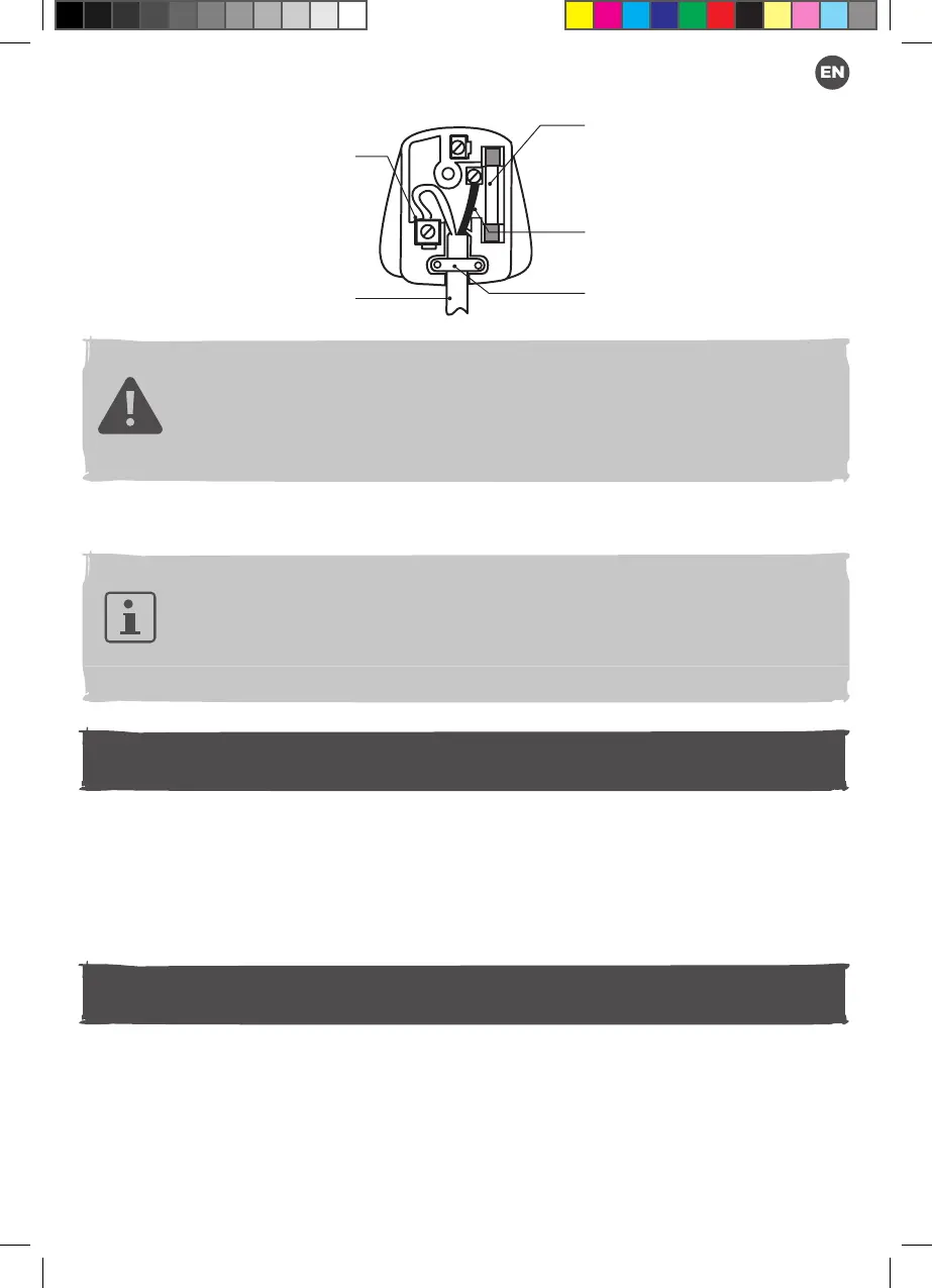 Only t an approved 13 Amp BS 1363 or BS 1363/A plug and the correctly rated fuse.