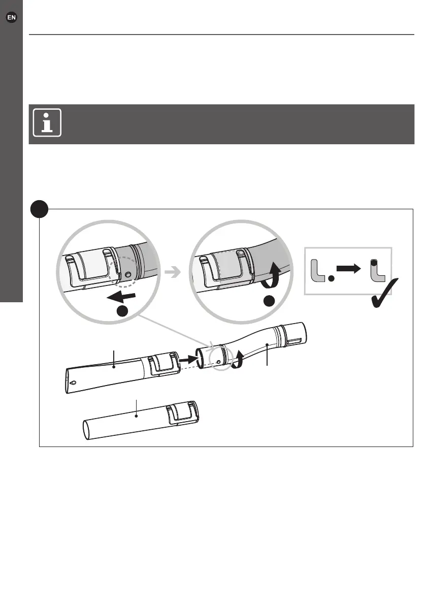 the S-shaped tube (17) into the nozzle (18/ 19) (Step 1, Fig.1). Turn the S-shaped