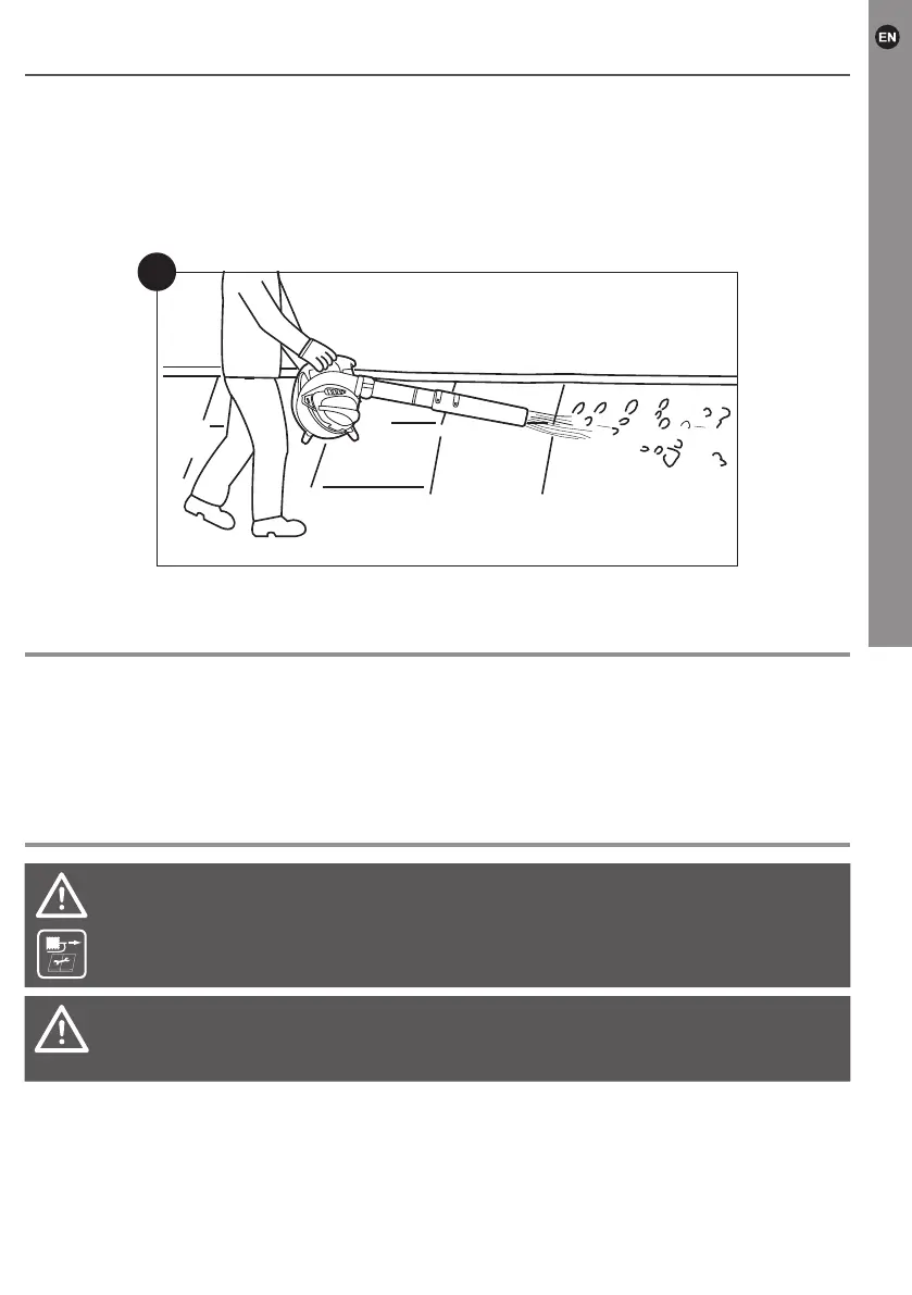 > Hold the nozzle (18/ 19) approximately 10 cm above the ground.