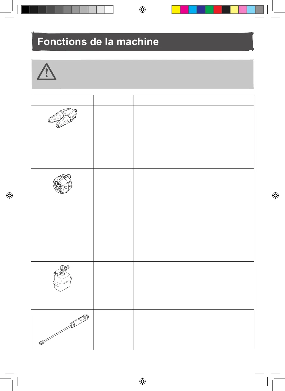 AVERTISSEMENT ! Ne pas régler les accessoires lorsque la machine
