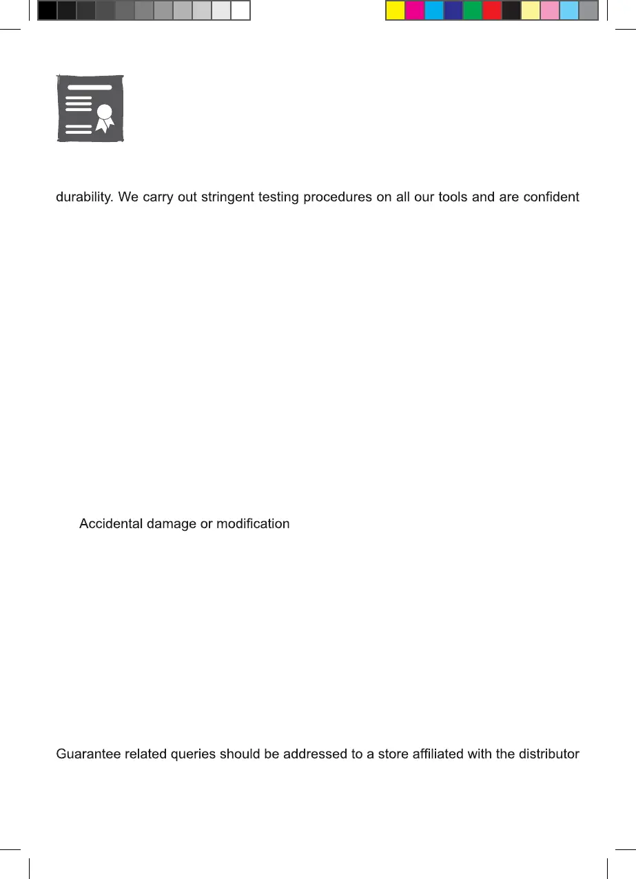 This power tool is guaranteed for 2 years from the date of purchase, if bought in store,