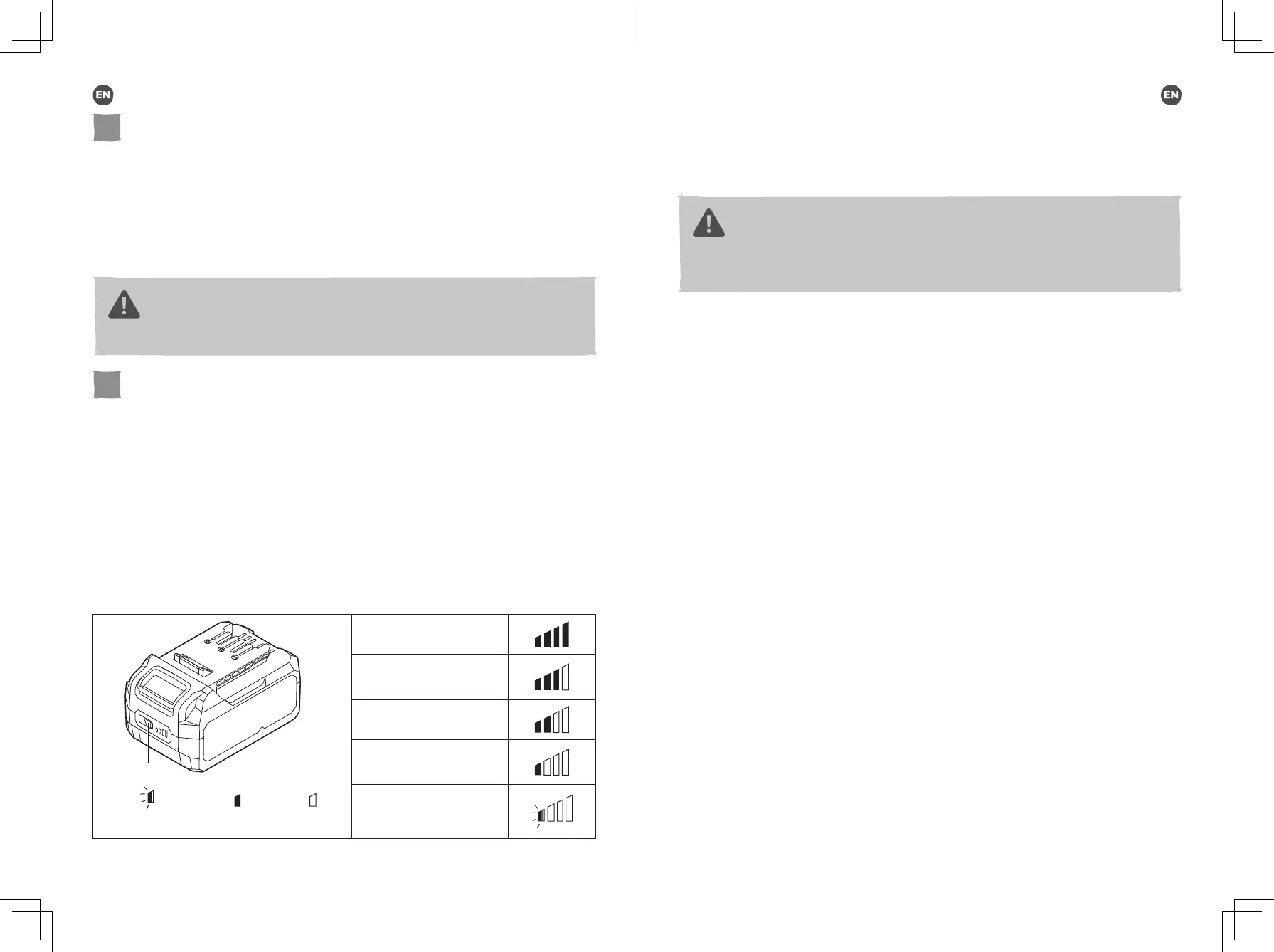 The Li-Ion battery pack (6) is equipped with a POWER BAR which is used to give an