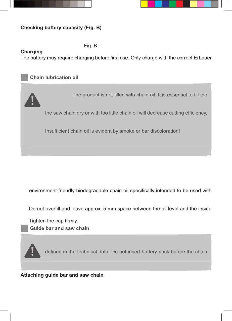 chain oil as this will result in extensive damage to the product! Operating