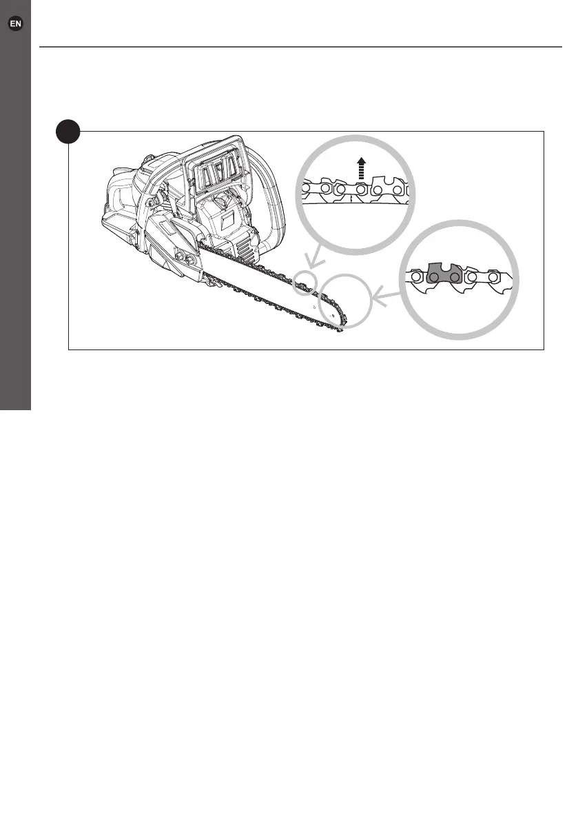 After adjusting the tension it should be possible to lift the saw chain (3) 3-4 mm from