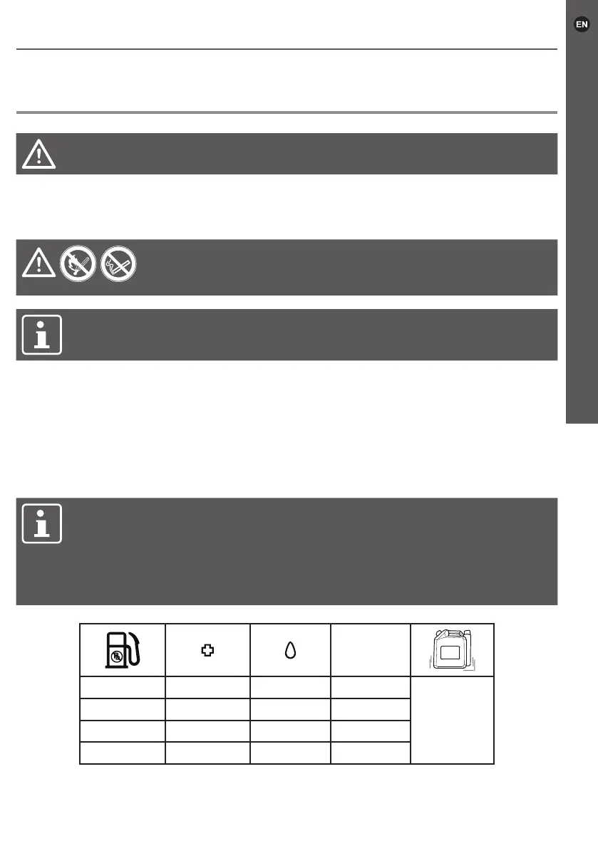 WARNING! Fuel and oil are highly inammable! Fumes will explode
