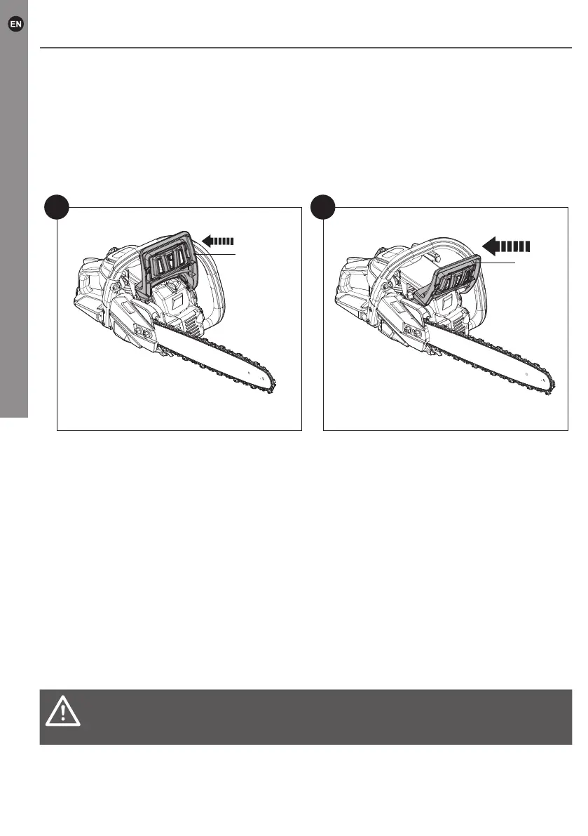While the engine is running, activate the chain brake by rolling your left hand forward