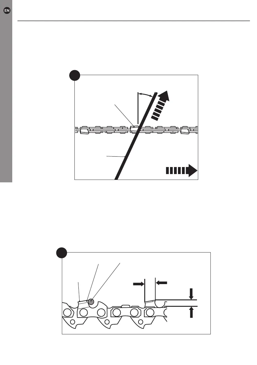 Keep all cutter lengths equal. Check the safety depth gauge height every 5 sharpenings.
