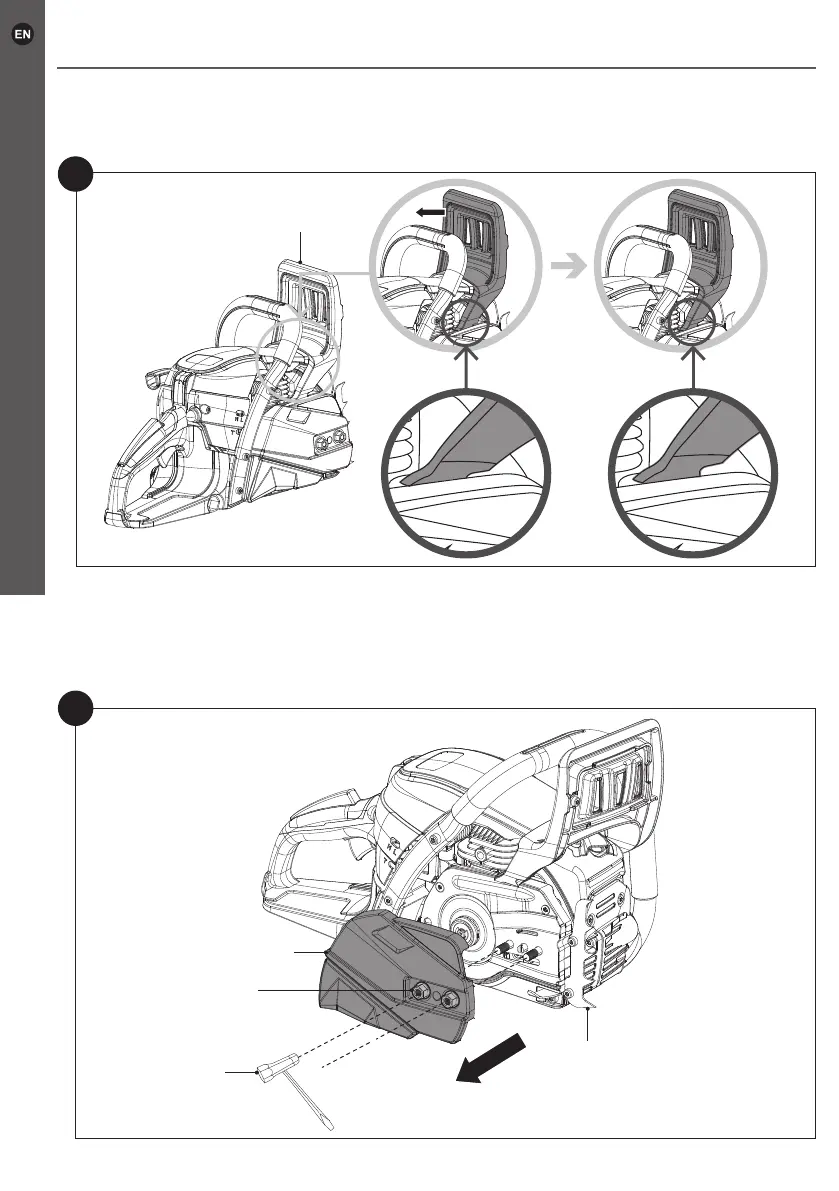 1. Pull the front hand guard (4) backwards to disengage the chain brake (Fig. 1).