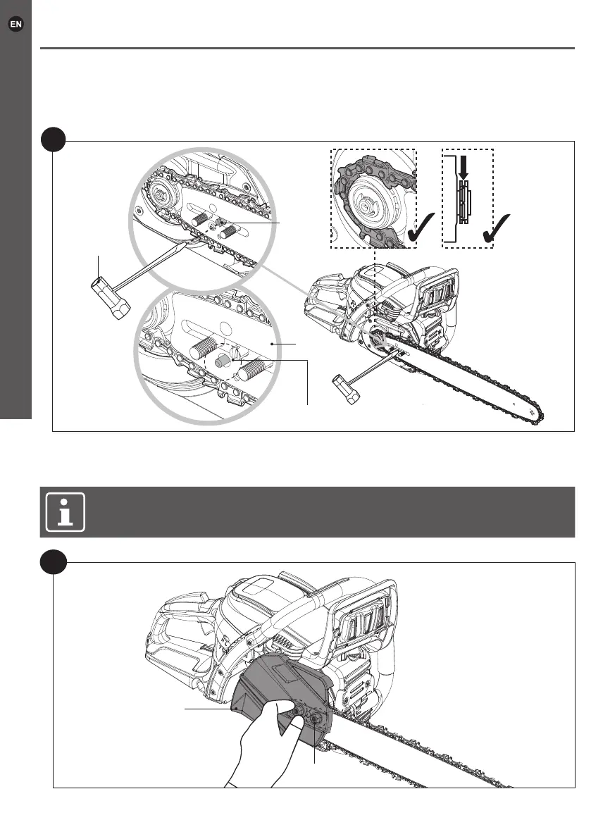 chain tension screw (20) clockwise or anti-clockwise with the multi-tool (24) (Fig. 5).