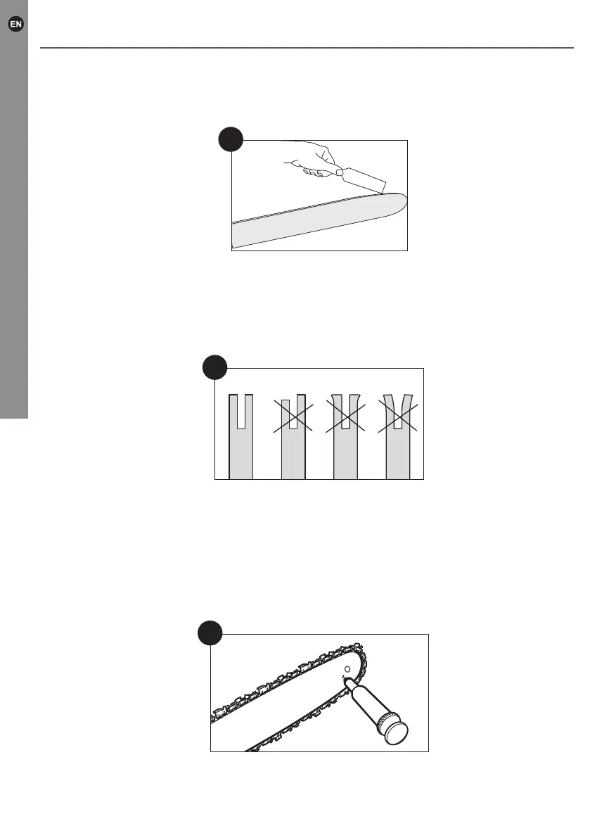 one if required. Experienced user can sharpen a dull saw chain (see section “Saw