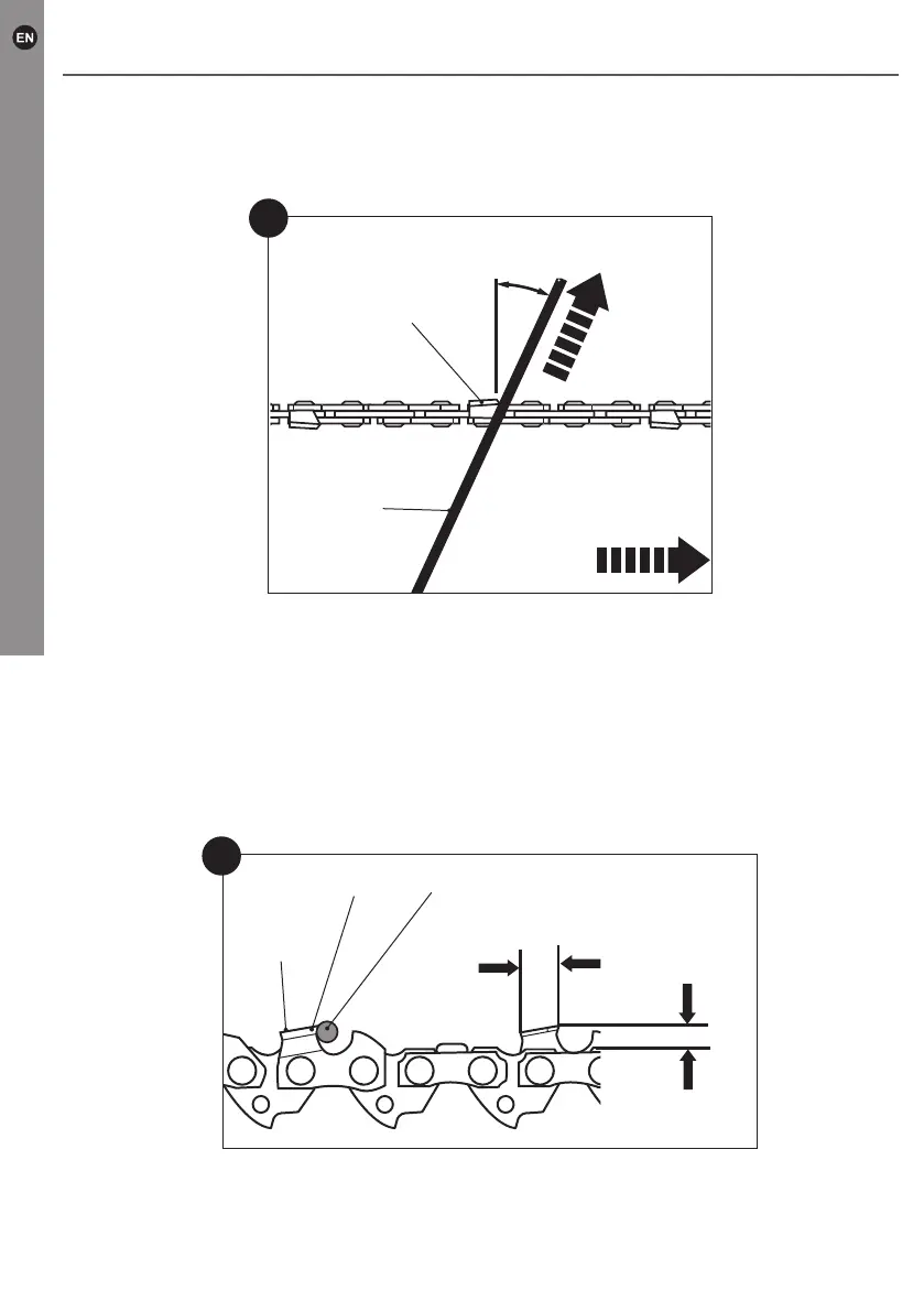 6. File each tooth from the inside towards outside only. File one side of the chain rst