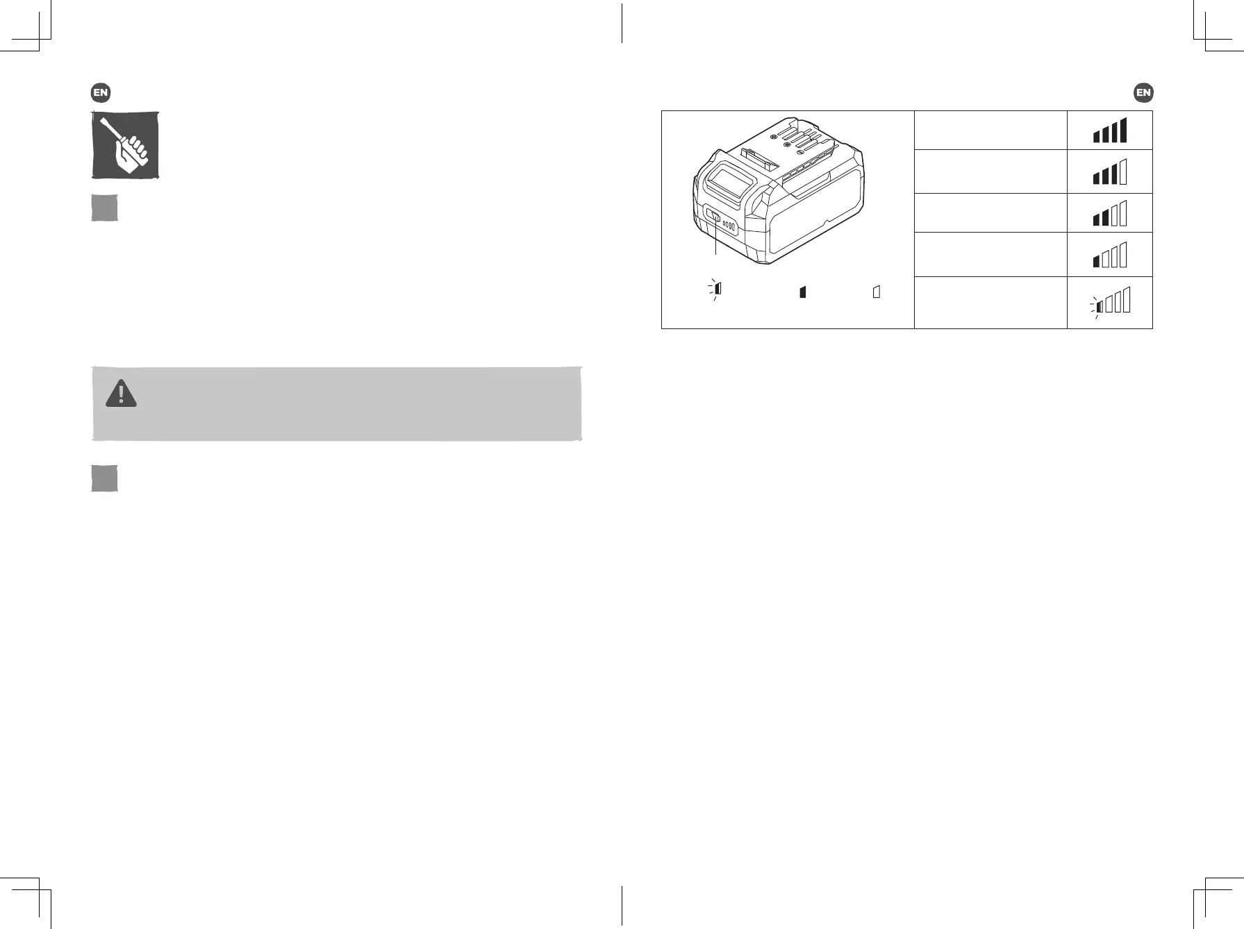 The Li-Ion battery pack (9) is equipped with a POWER BAR (8) which is used to give an