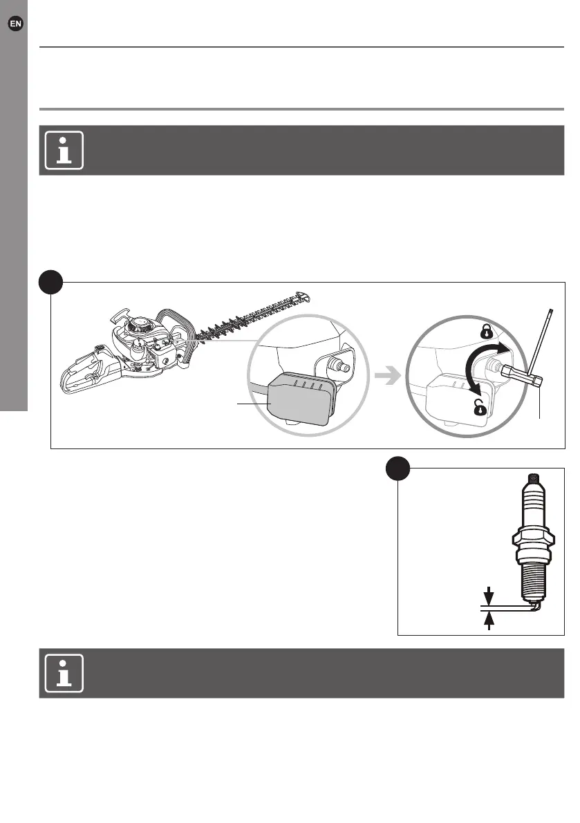 Inspect the spark plug every 25 hours or before long-term storage over 30 days. Clean