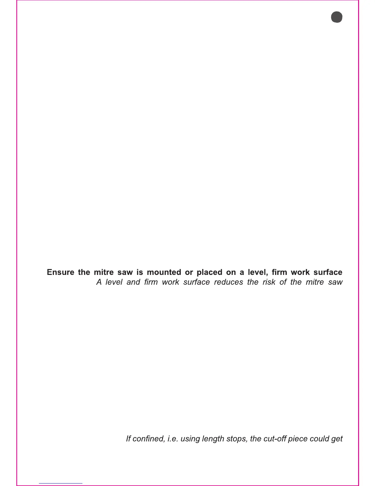 n) The cut-off piece must not be jammed or pressed by any means against the