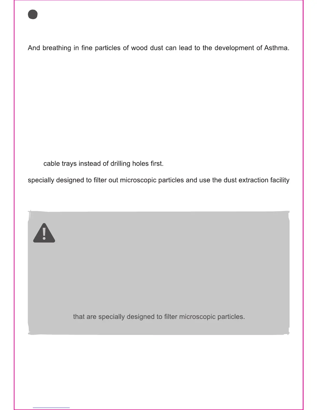 WARNING! Some dust particles created by power sanding, sawing,