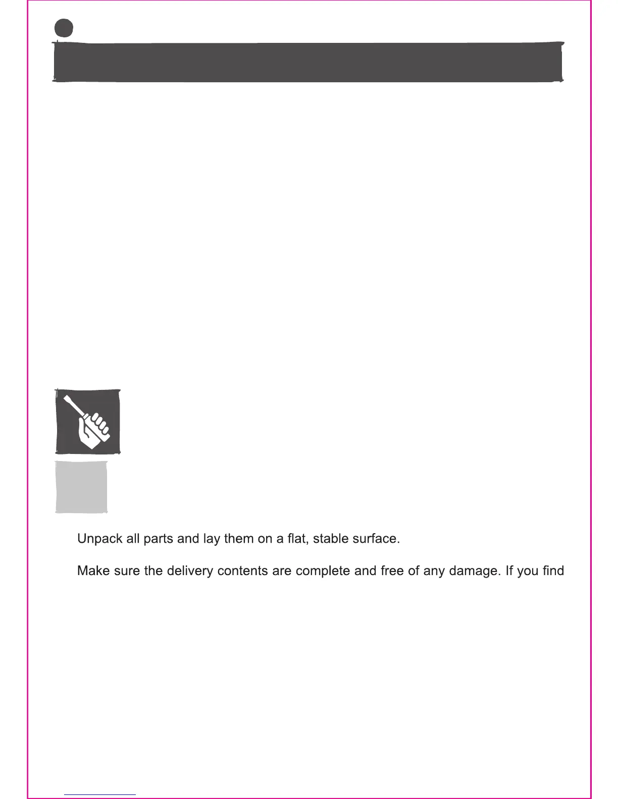 4. Ensure that you have all the accessories and tools needed for assembly and