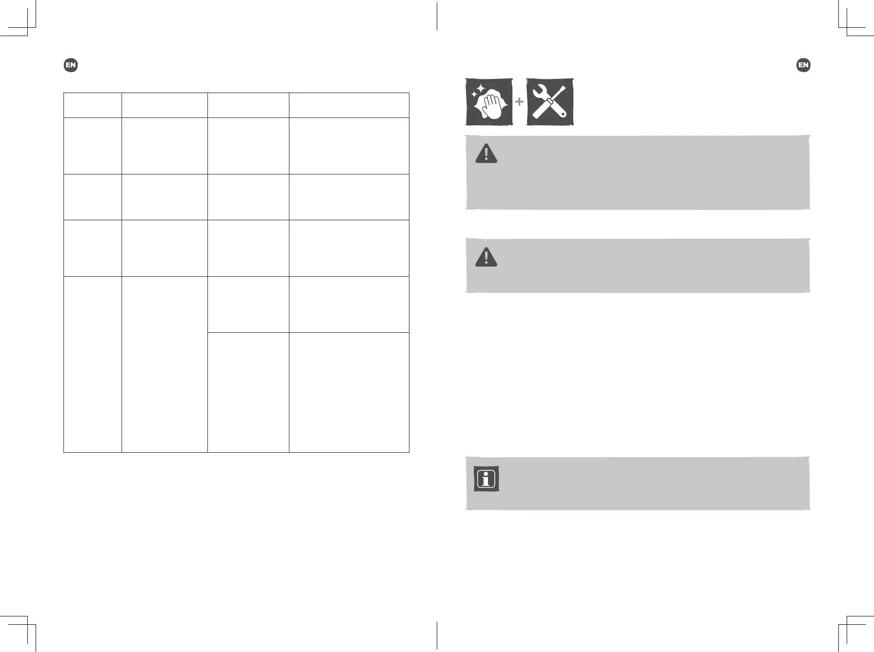 Only perform care and maintenance work according to these instructions!