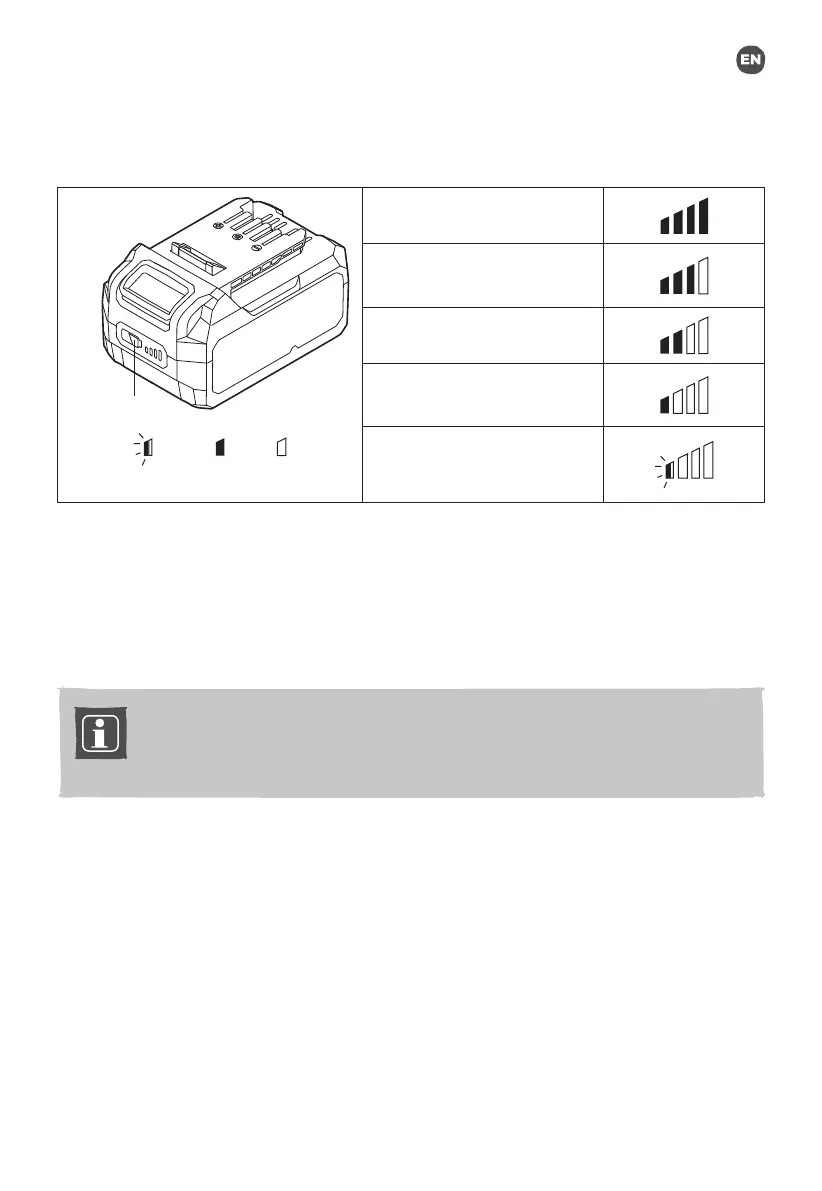 The Li-Ion battery pack (4) is equipped with a POWER BAR which is used to give an