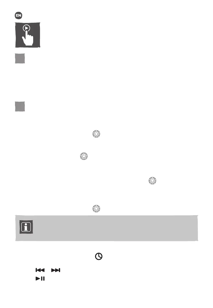When the unit is switch on, briey press the On/Off/Volume knob , the unit switches to