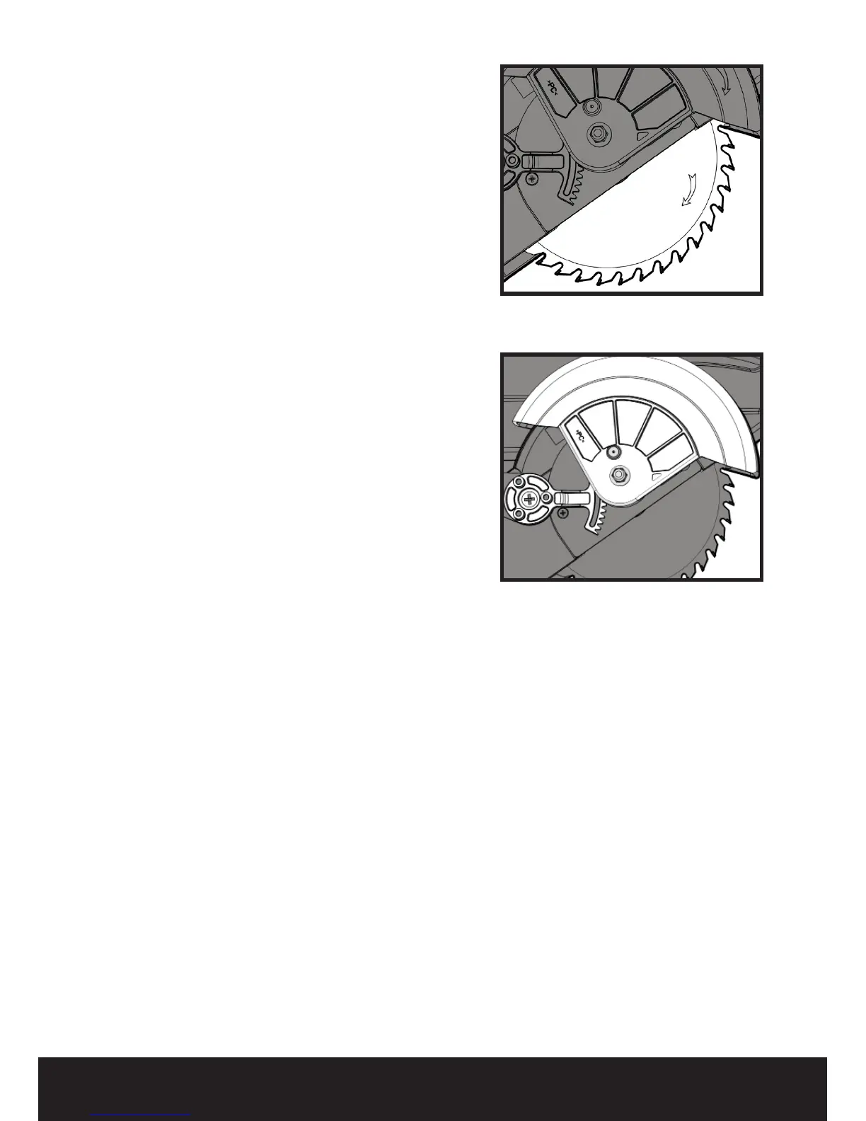 clockwise rotation arrow on the upper guard. The