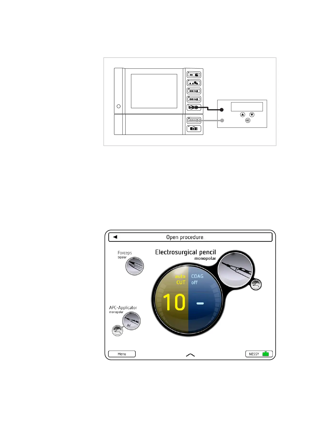 • The test specimen is connected via the VIO 3 electrosurgical unit to the