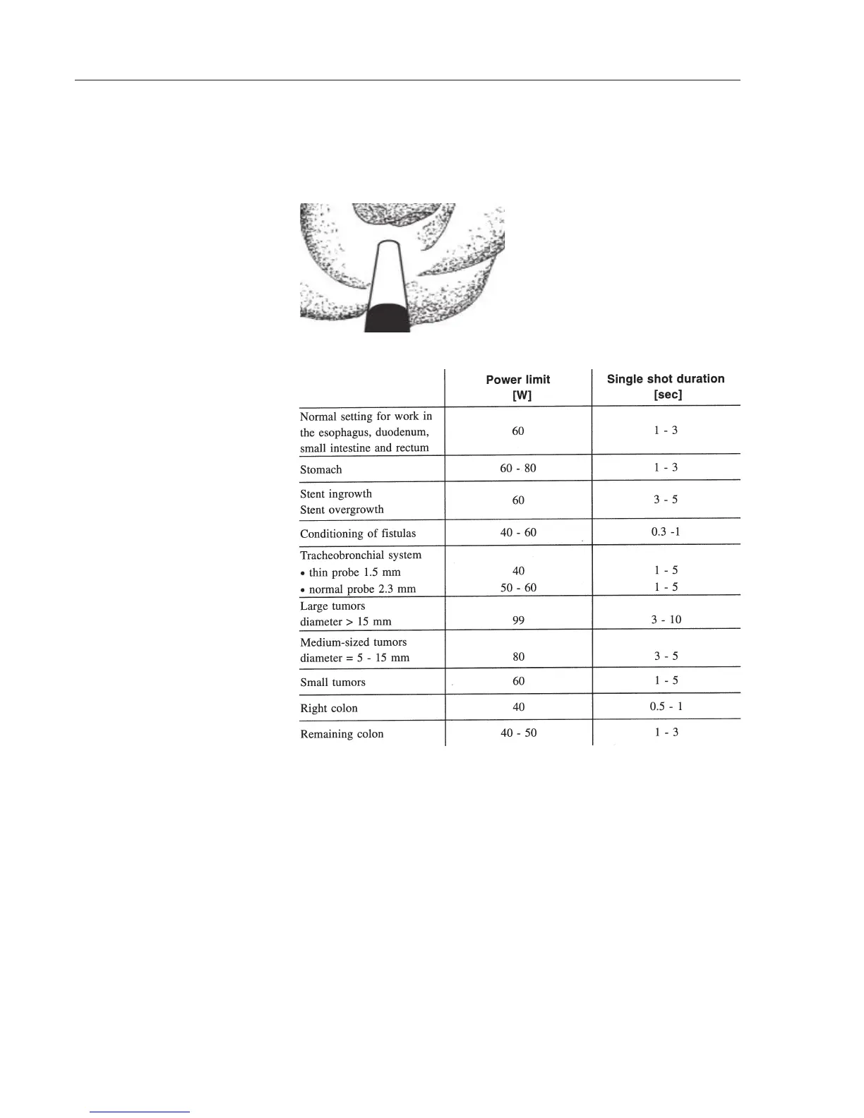 • The distal end of the APC probe should be not less than 3 mm and no