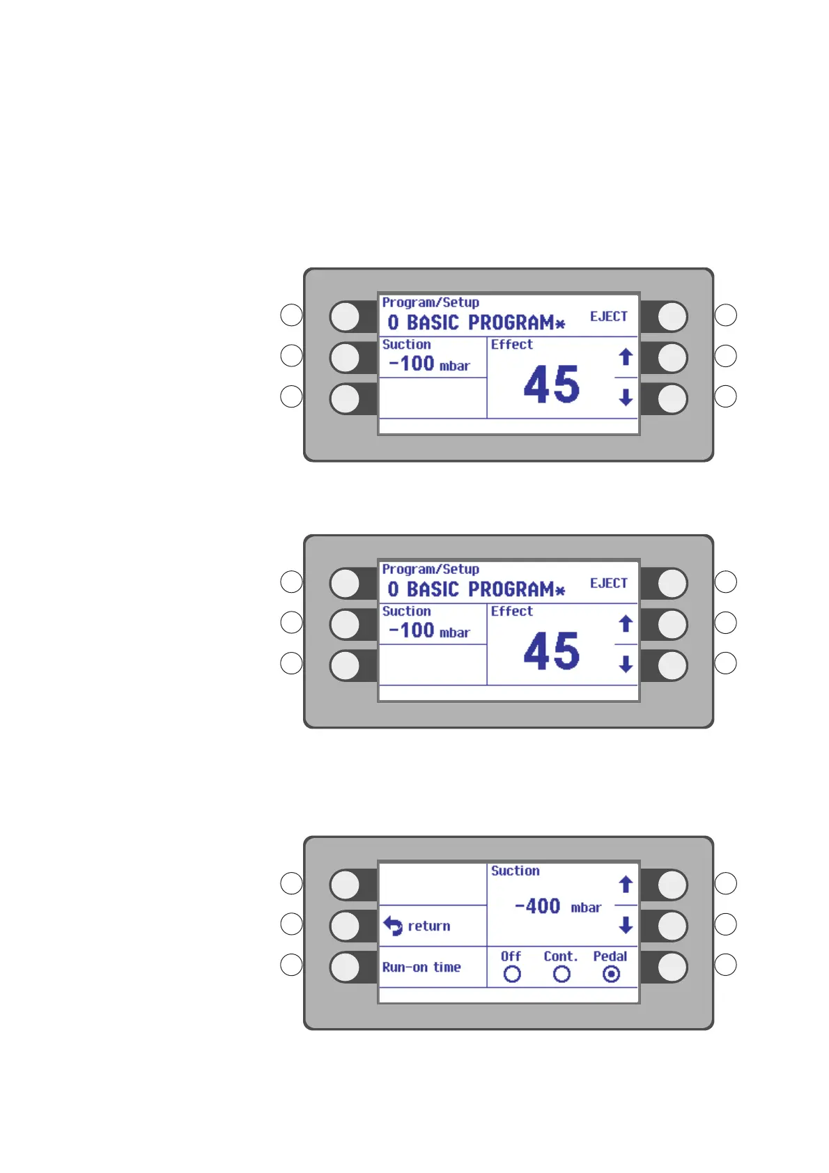 Press the selection button next to the menu item Suction.