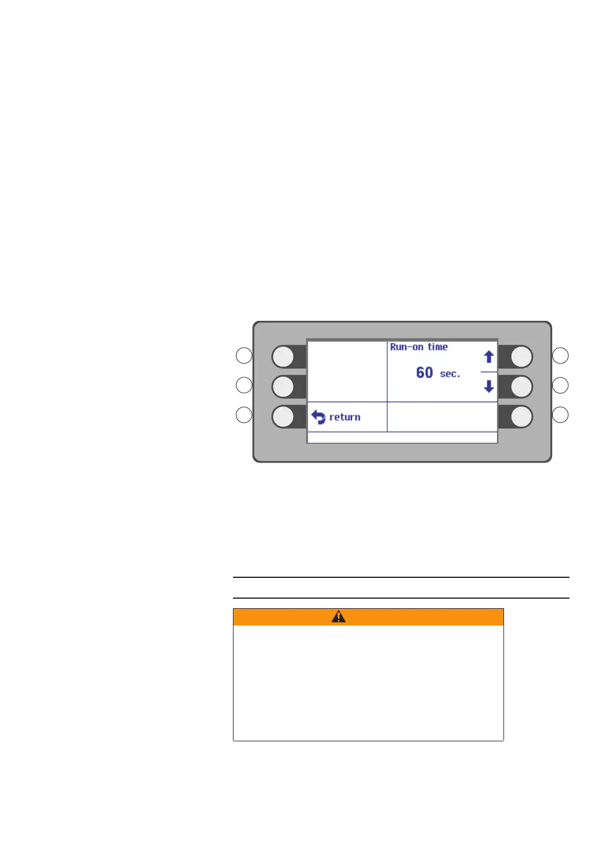 Select a run-on time in the range 1 to 60 sec. with the selection buttons R1, R2. Ex-