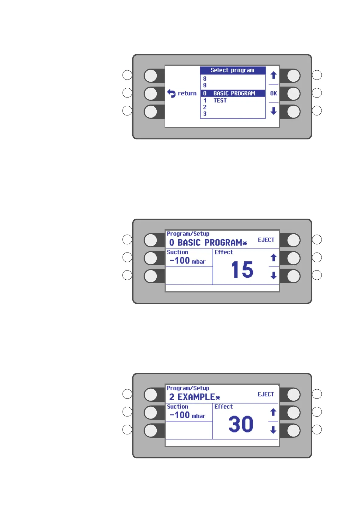 3. Select a program with the selection buttons R1, R3. Example: BASIC PROGRAM.