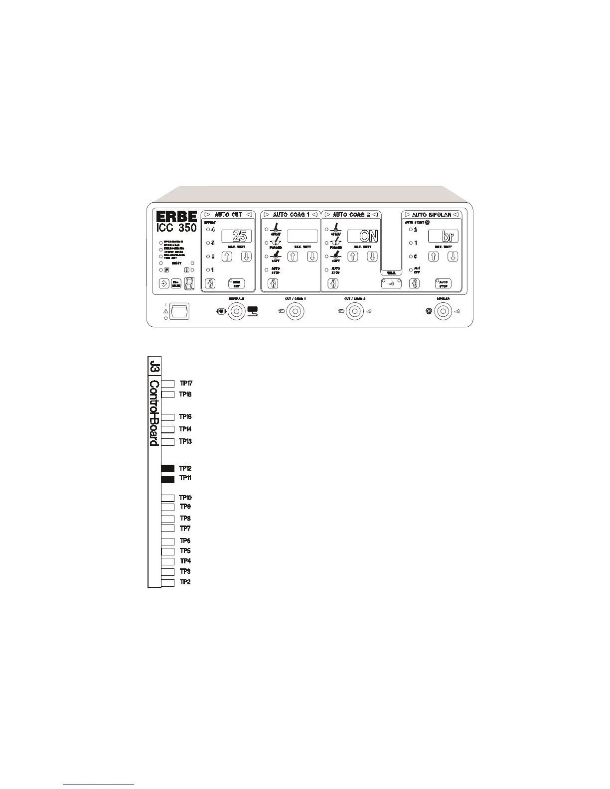 • uuu Standby measurement value of the contact monitor at a preset bipolar power of 10 watts
