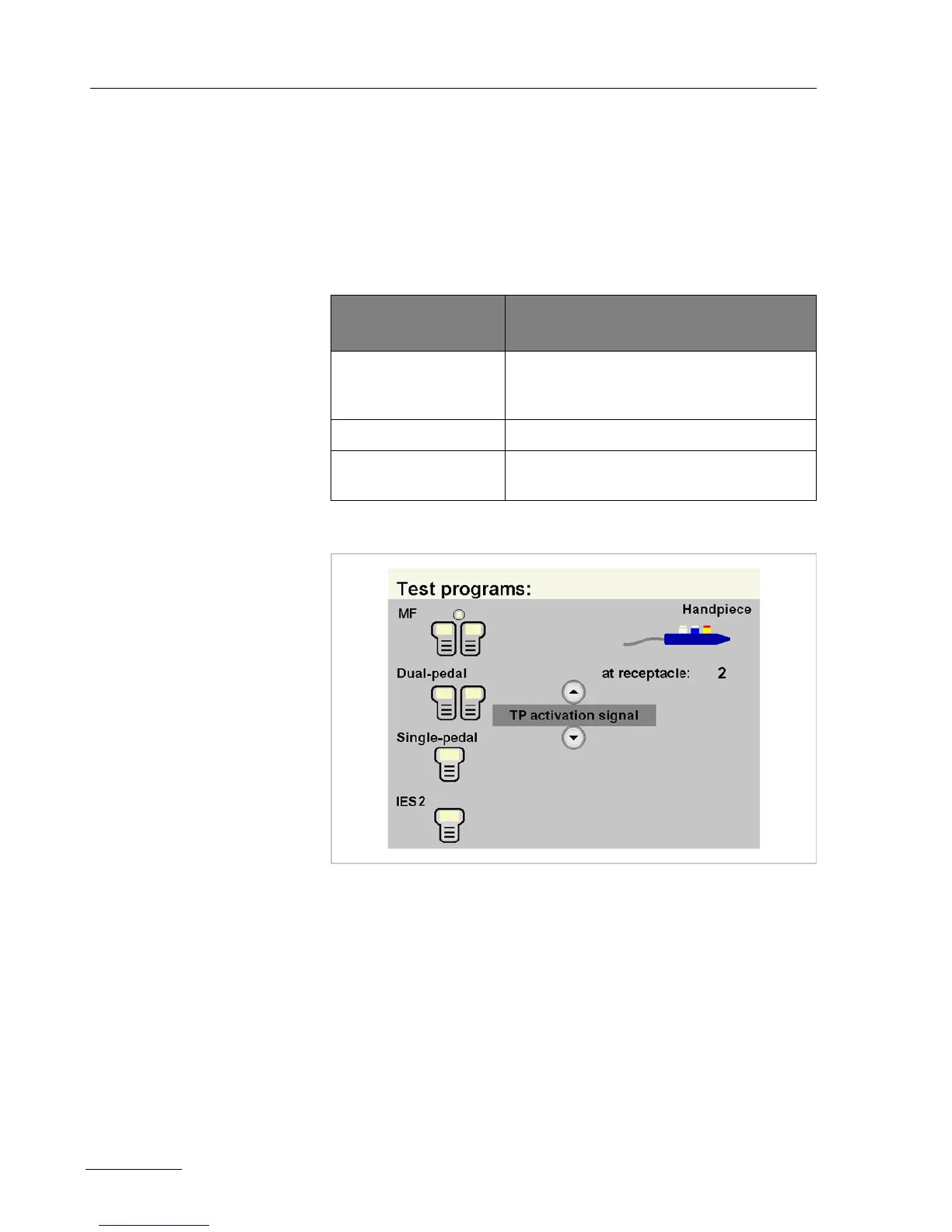 • The test program "TP activation signal" is selected.