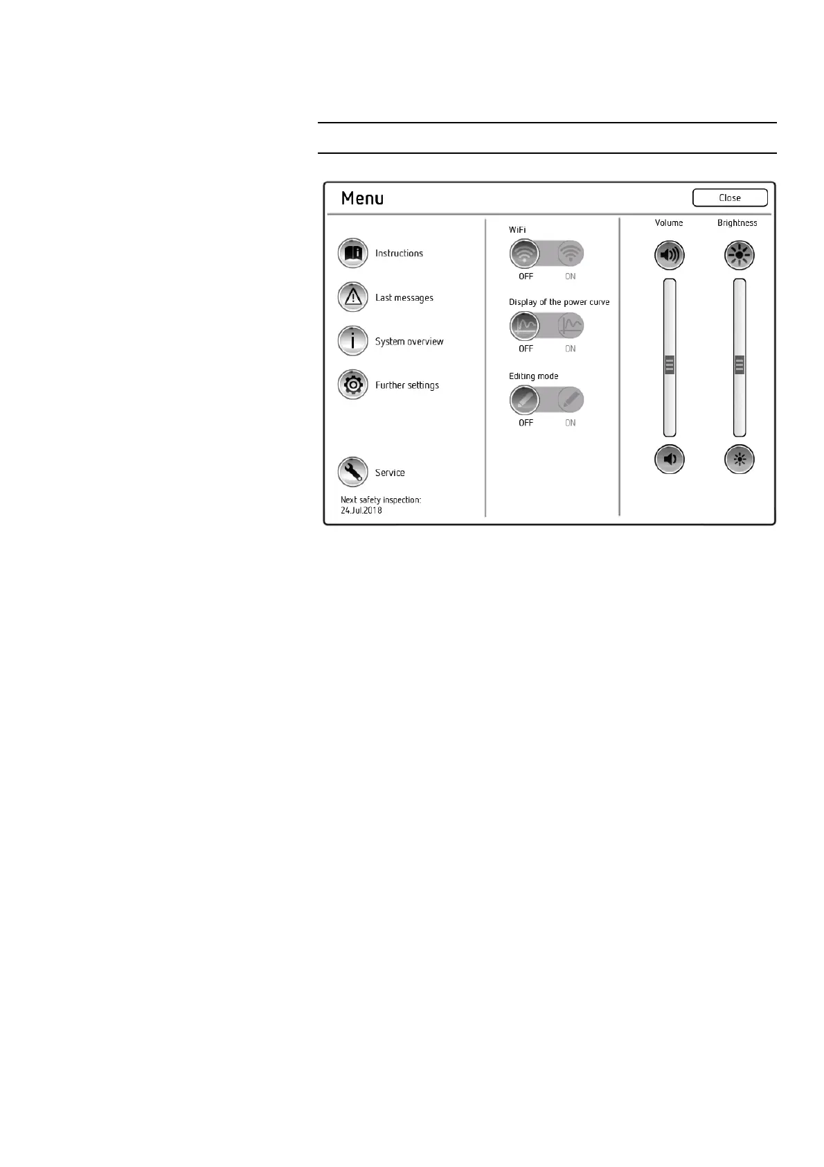 5 System settings and "Service" menu