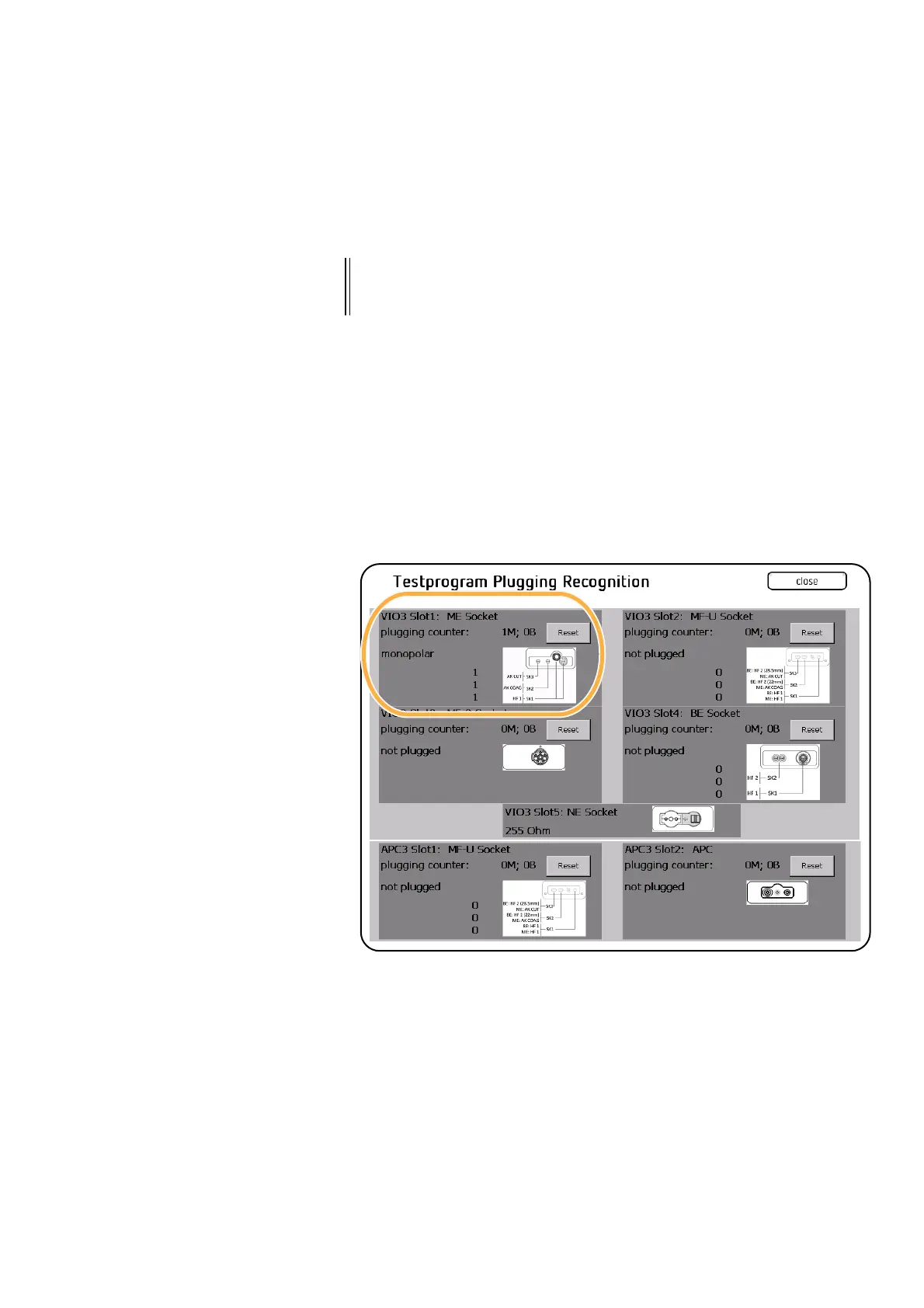 XB (=bipolar connector). The plugging counter can be reset using