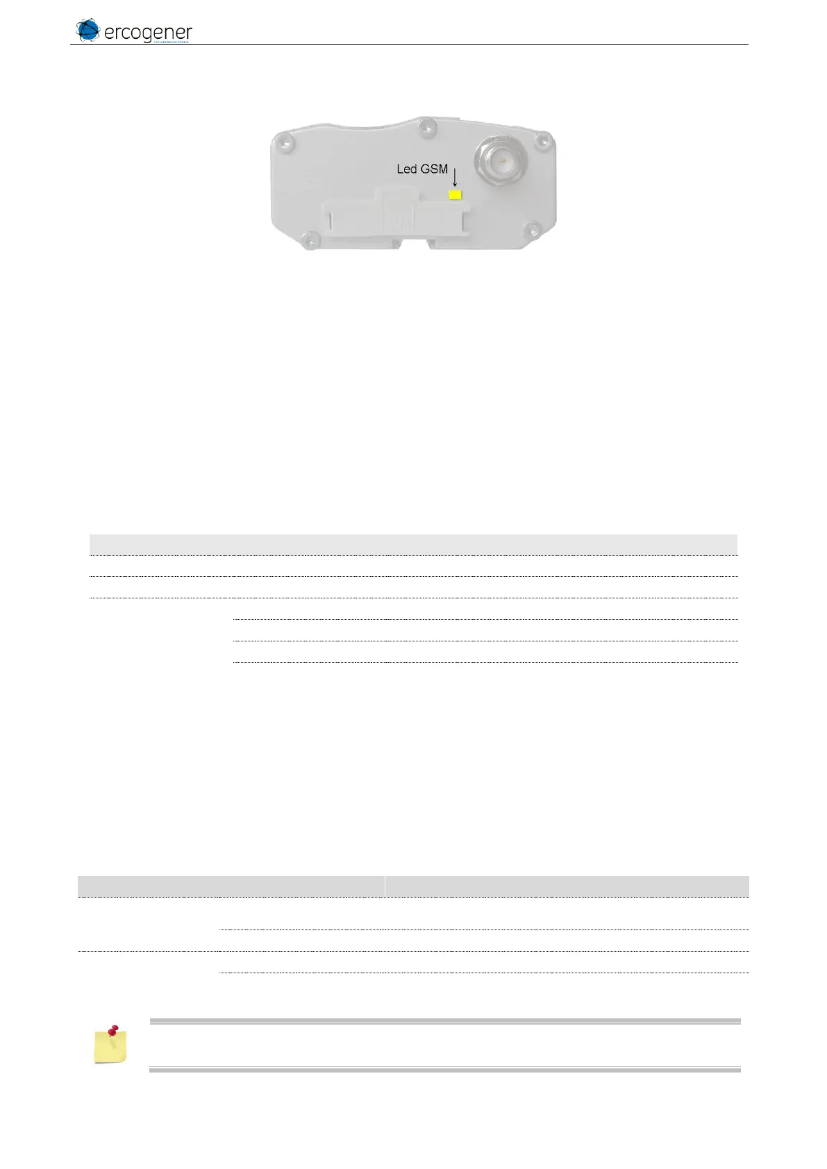The status of the GSM module is indicated by the status of the LED situated on the back side of the modem.