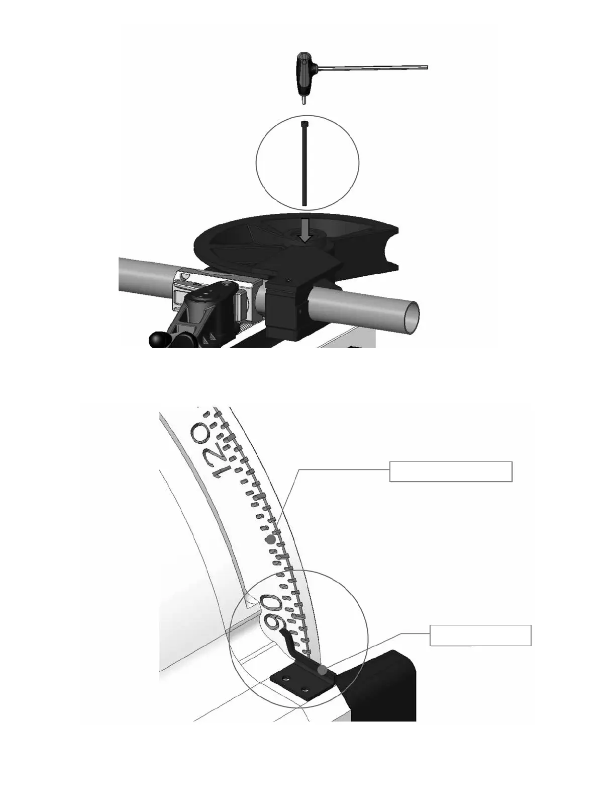 Figure 16 - Reading the value of the angle on graduated disc using index